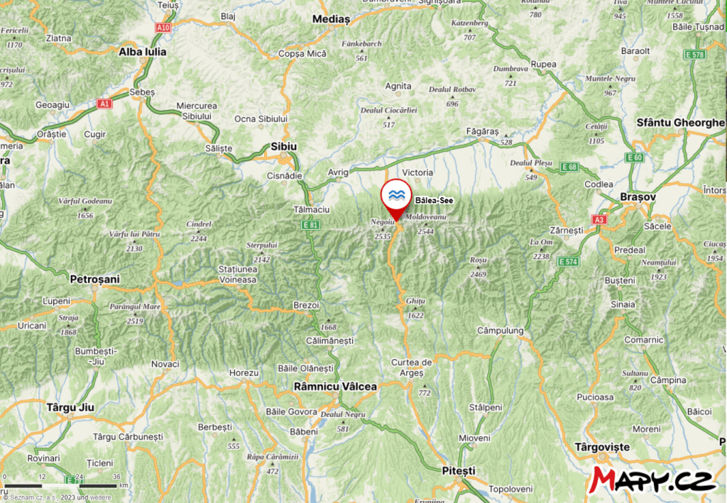 Der Bâlea-See ist der bekannteste und meistbesuchte Gletschersee Rumäniens aufgrund seiner einzigartigen Lage. Er liegt auf 2.034 Metern in der Hochmulde eines Trogtals inmitten der Făgăraș-Berge, dem zentralen und höchsten Massiv der rumänischen Karpaten. Der See liegt direkt an der Transfăgărașan, einer 151 Kilometer langen Passtraße durch die Făgăraș-Berge, die zusammen mit der weiter westlich liegenden Transalpina zu den schönsten und beeindruckendsten Bergstraßen in Europa gezählt wird. Vom See aus nach Norden fällt der Blick in das Bâlea-Tal, durch das die Transfăgărașan in kuriosen, fast surrealen Serpentinen den beeindruckenden Höhenunterschied zum See hinauf überwindet.