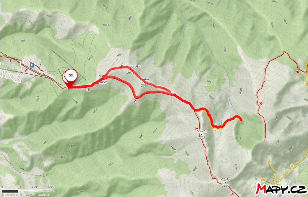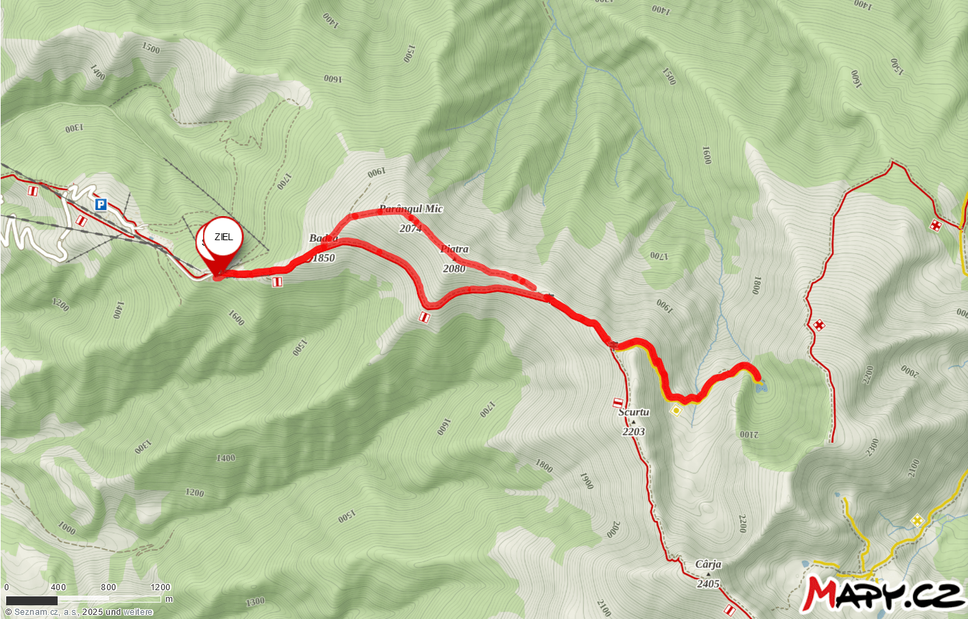 Stetig, aber nicht zu steil, werden zu Beginn die ca. 400 Höhenmeter zum Parângul Mic, dem Kleinen Parâng, mit seinen 2.074 Metern überwunden. Dabei reicht der Blick weit in die Umgebung. Am Parângul Mic lädt eine Bank zum Verweilen ein und den fantastischen Ausblick in alle vier Himmelsrichtungen zu genießen. Über den skurril-buckeligen Grat des Piatra („Stein“) wird die Abzweigung erreicht, von der es rechts weiter über den Cârja zum Parângul Mare geht. Links geht es über die Hänge des Scurtu („der Kurze“) hinab in das Mija-Tal und wieder hinauf zum Mija-See.