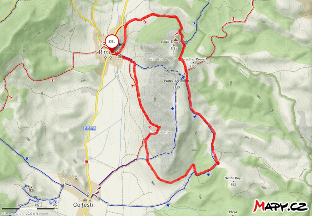 Für eine Tour über die Piatra Secuiului gibt es zwei mögliche Varianten. Die anspruchsvollere verläuft über den Grat des Bergs in Nord-Süd-Richtung. Aufstieg und Abstieg sind dabei recht steil und geröllhaltig.